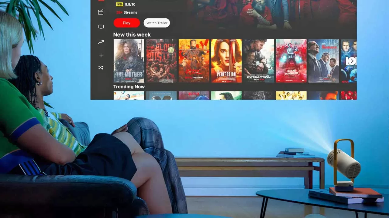 Videotykissä on mukana Netflix-suoratoistopalvelu, joten sen käyttö onnistuu helposti omalle käyttäjätilille kirjautumisen myötä. Lisäksi videotykillä voidaan toistaa elokuvia ja tv-sarjoja Google TV -palvelun kattavasta valikoimasta. Videokuva toistuu upeasti täysteräväpiirtoisella 1080p-kuvatarkkuudella ja jopa 250 lumenin valovoimalla.
